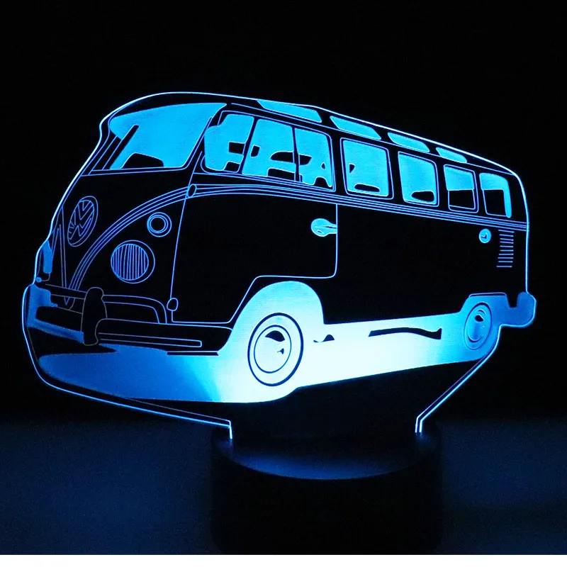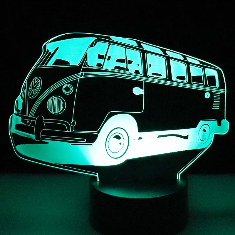 3D LED Night Light Colorful Autobus Bus Car with 7 Colors Light for Home Decoration Lamp Amazing Vi